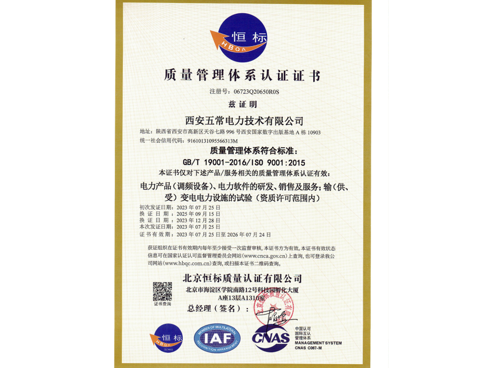 西安五常电力技术有限公司快速频率响应设备通过江苏电科院检测
